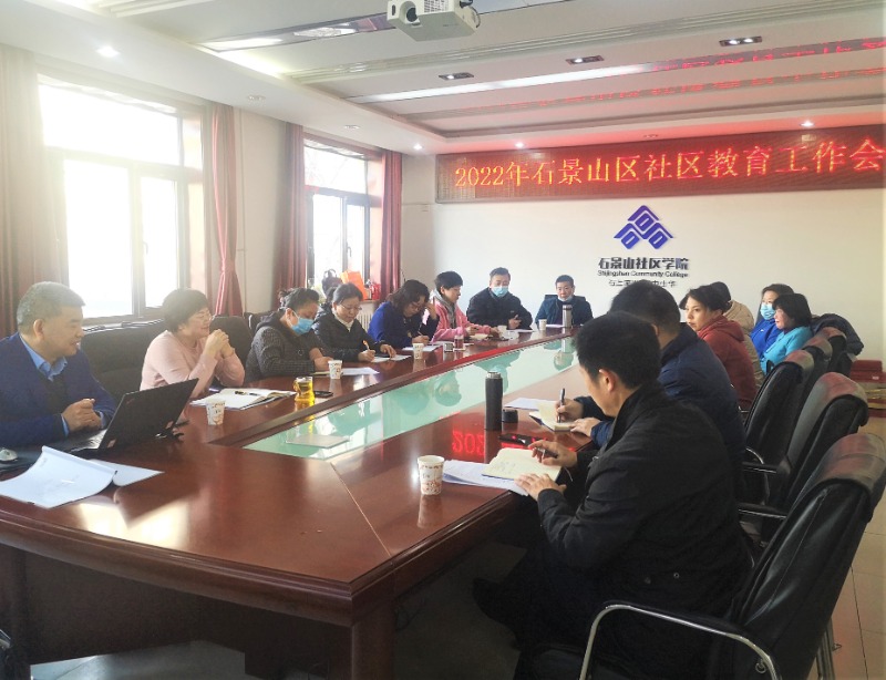 3月3日,石景山区2022年社区教育工作会在石景山社区学院召开,石景山区教委职成科科长朱志学、职成科彭中群老师、社区学院副院长戎梅、社区教育研究与发展中心全体老师以及全区9个街道社区教育专职教师参会。
