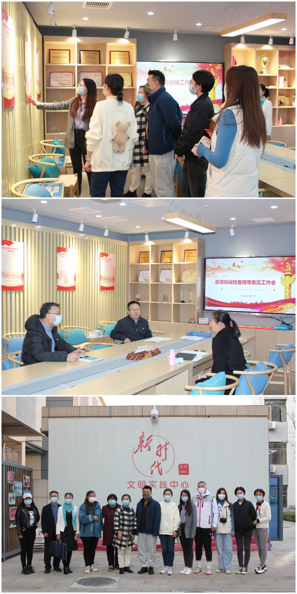 近日, 石景山区创城办未成年人思想道德建设检查组、实地组、网传组等一行11人,对石景山区新时代文明实践中心创城点位进行了实地检查,并分别提出了指导意见。